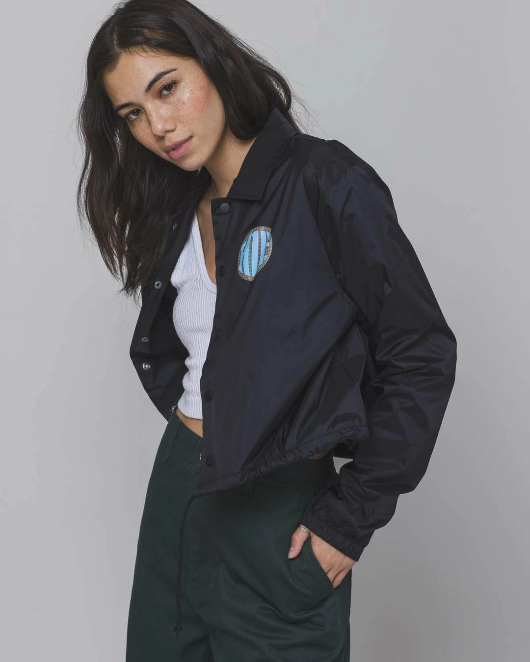 - 100% nylon cropped coaches jacket