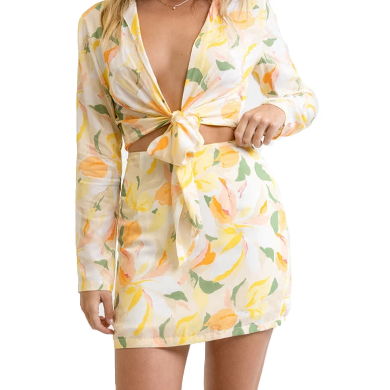 In a bold apricot floral for the girl who wants to stand out, the Ivy Mini Skirt in a classic 90’s slim fitting mini skirt cut is made for chasing sunsets, taking your look from beach to bar.