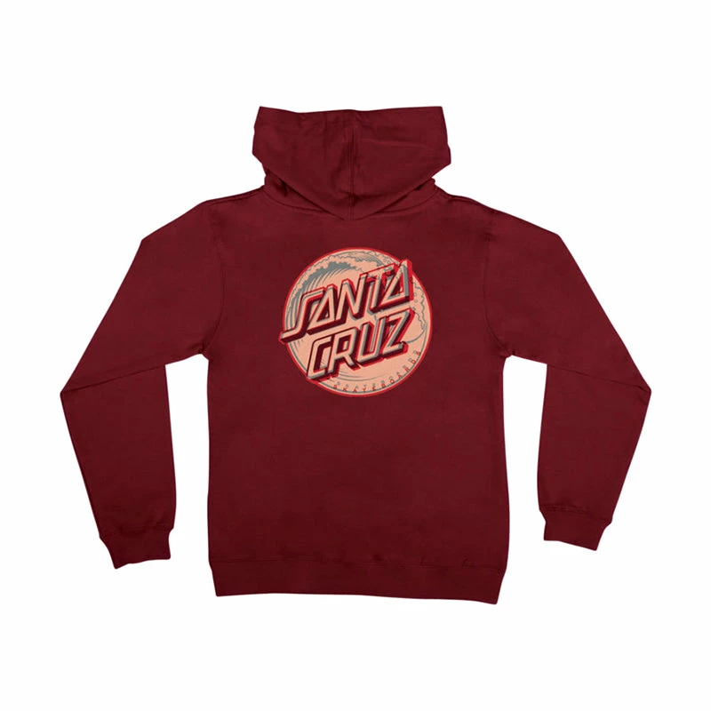 Regular fit youth 8.5 oz. fleece pullover hooded sweatshirt with front and back decoder Santa Cruz Decoder Dot logo prints. Front and back prints turn from Santa Cruz Dot to Santa Cruz Wave Dot using included decoder hangtag.