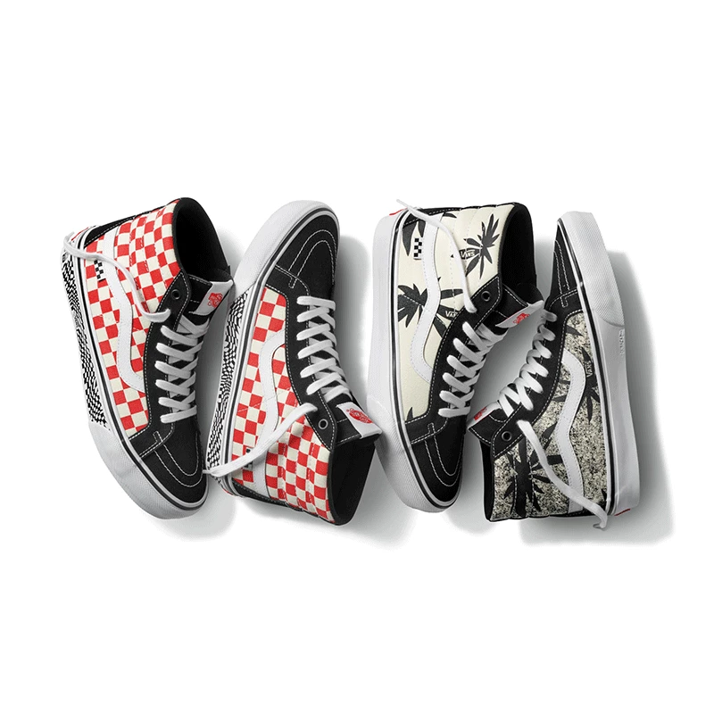 Re-issues of Grosso’s own shoes from his 50 years of wearing Vans. Jeff wore the black and red checkerboard Sk8-His in his introduction to the skateboarding world in the legendary Powell Peralta video “Future Primitive” in 1985 & Jeff’s June 2020 Thrasher cover.